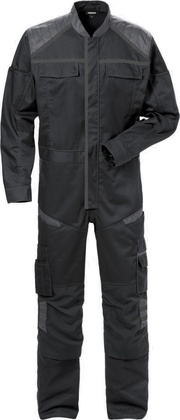 En slitstark overall med modern passform för arbetare inom industri- eller servicejobb. Tillverkad i ett lätt och slitstarkt material med mekanisk stretch som ger otroligt bekväm rörelsefrihet. Overallen är utrustad med knäfickor och har reflexdetaljer för bättre synlighet. Godkänd för industritvätt. PFAS-fri.